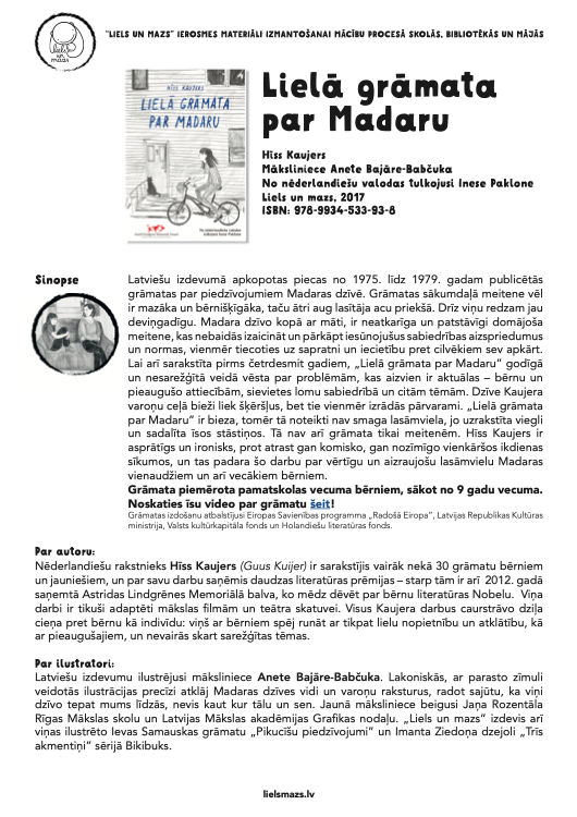 • Grāmatas ierosmes materiāls izmantošanai mācību procesā skolās, bibliotēkās un mājās pieejams šeit.