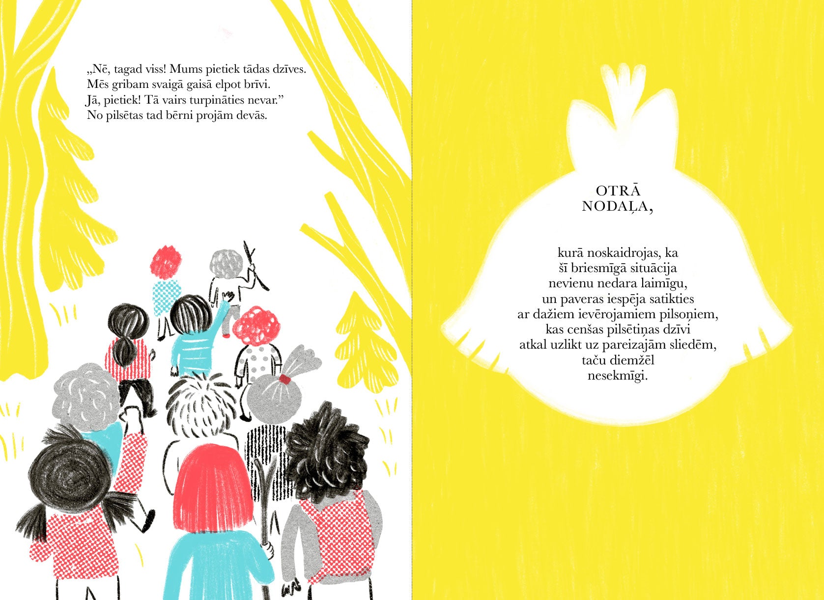 Indreka Kofa dzejoļu krājuma notikumi norisinās kādā ciemā, kur dzīve rit gludi un jauki – līdz kādu dienu visi bērni nolemj aizbēgt uz mežu, jo uzskata, ka tiek pārāk kontrolēti un komandēti. Taču izrādās, ka pieaugušajiem ļoti pietrūkst ierastās līksmās bērnu klaigāšanas, skraidīšanas un lēkāšanas. Mērs sūta armiju viņus meklēt, skolotāja mēģina bērnus atvilināt atpakaļ ar kūku un konfektēm, negantais tēvocis Reins izsaka niknus draudus, diriģents mēģina izmantot Mocarta un Baha darbus – taču nekas nelīdz. Kā pierunāt bērnus atgriezties mājās, lai ciematā atkal būtu dzīvība?
