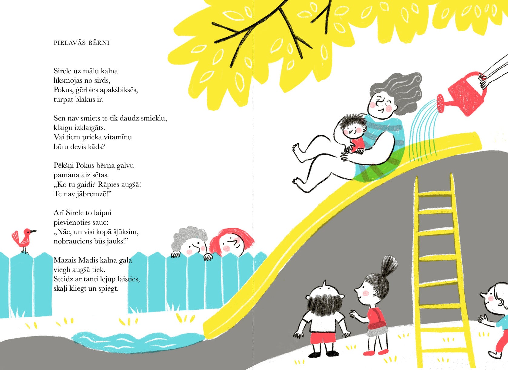 Grāmata jautros atskaņotos pantos, kuros netrūkst ne ironijas, ne spēlēšanās ar valodu, aizstāv bērnu tiesības un vedina pieaugušos nepadarīt dzīvi sev un bērniem par galaicīgu pienākumu nastu, nepazaudēt bērnišķīgu prieku.