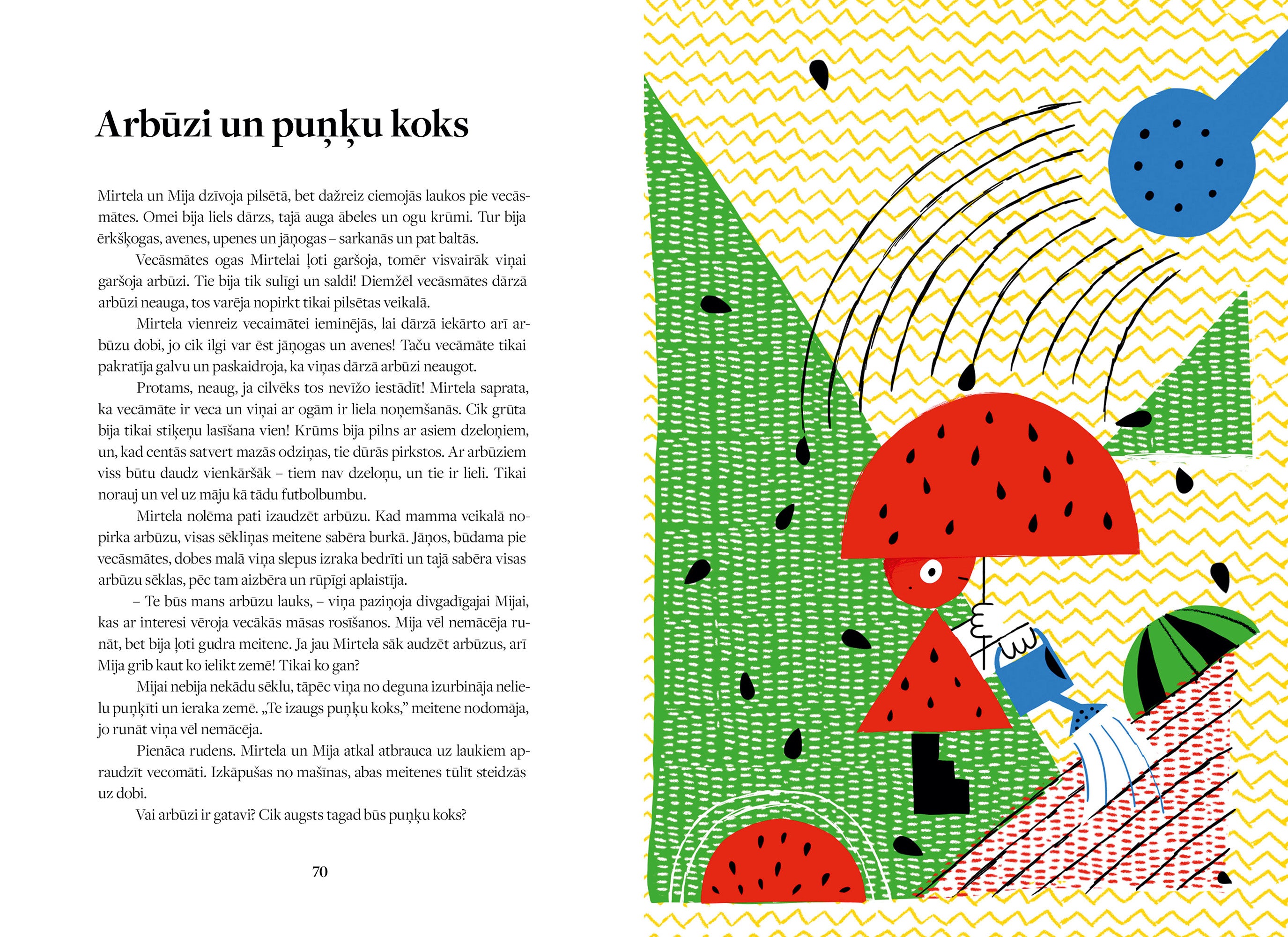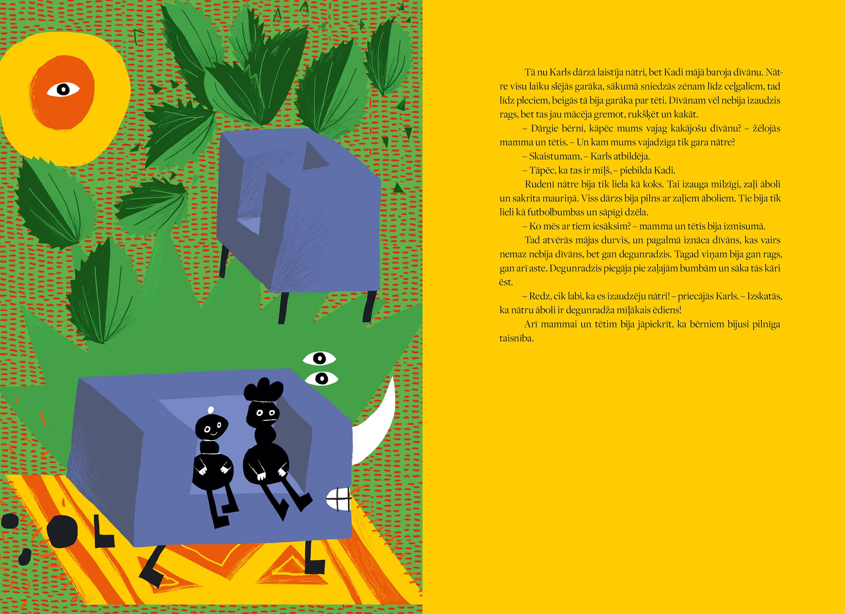 Grāmatu no igauņu valodas tulkojis Guntars Godiņš, ilustrācijas veidojis Edmunds Jansons. Jaunā grāmata ir populāro, latviski izdoto grāmatu “Kaka un pavasaris” un “Karnevāls un kartupeļu salāti” trešā māsa – tikpat asprātīga, drosmīga, patiesa un mīļa. Rakstnieka iztēles sprādziens iekustina bērna spēju iejusties cita ādā un situācijā.