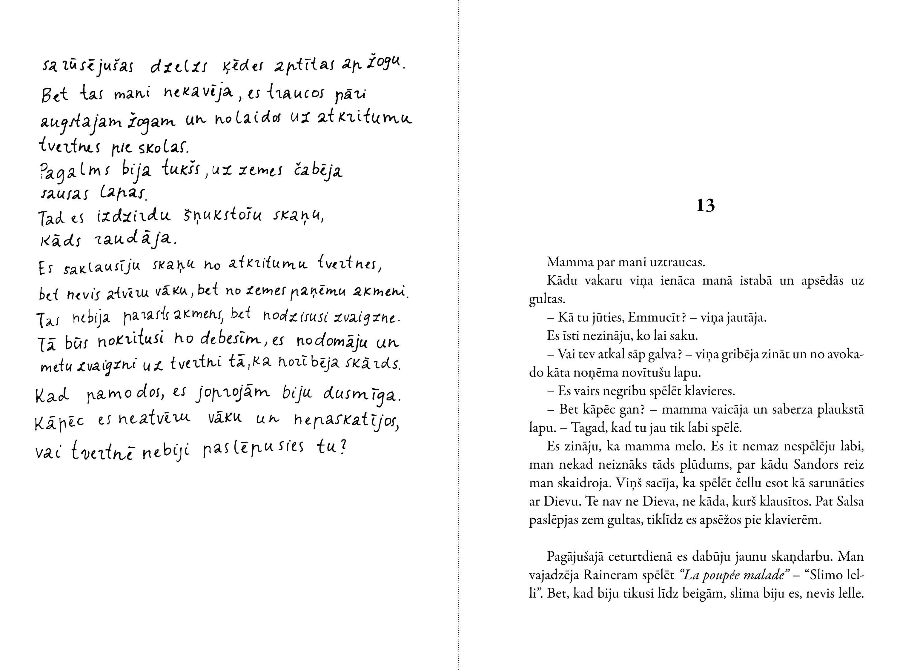 Savā sarkanajā grāmatā četrpadsmitgadīgā Emma Glorija, kas dzīvo Helsinkos, raksta par lietām, kurās nespēj dalīties ne ar vienu citu: par ilgām un bailēm. Viņa radījusi sev paralēlu pasauli, kurā atspoguļojas viss, kas notiek realitātē, bet viņai ilgi un mokoši neizdodas abas šīs pasaules savienot un tikt galā ar reālo.