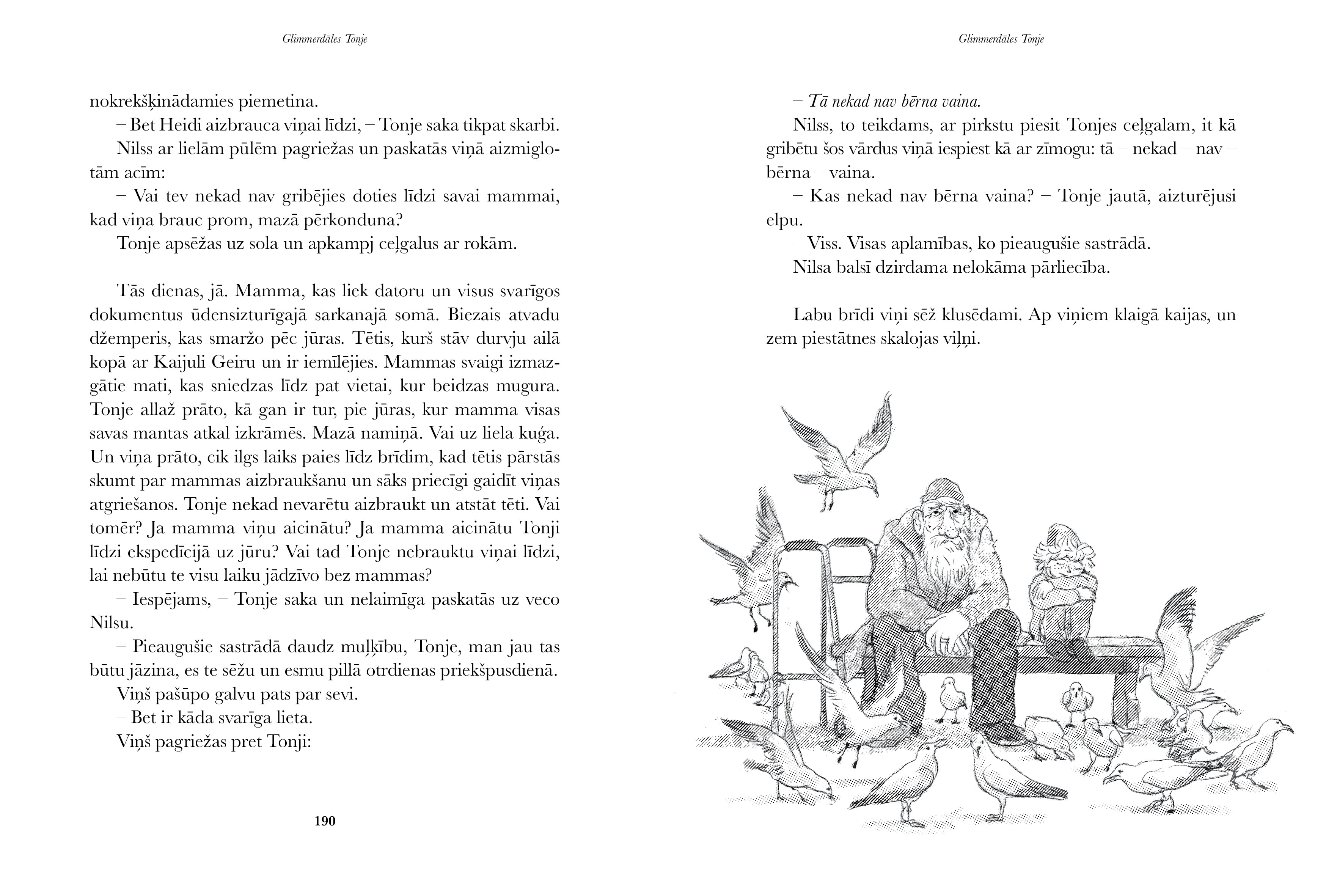 Reinis Pētersons, kura ilustrācijas jau daudzreiz izpelnījušās lasītāju un profesionāļu atzinību, bijis arī scenogrāfs Latvijas leļļu teātrī, zīmē aizraujošas galda spēles un ir animācijas filmu mākslinieks. Grāmatas “Glimmerdāles Tonje” oriģinālilustrācijās viņš izmantojis grafiska rastra un spurainu līniju saspēli, kas sasaucas ar stāsta galvenās varones Tonjes raksturu, un ļāvis lasītājiem arī ielūkoties Norvēģijas kalnu romantikā.