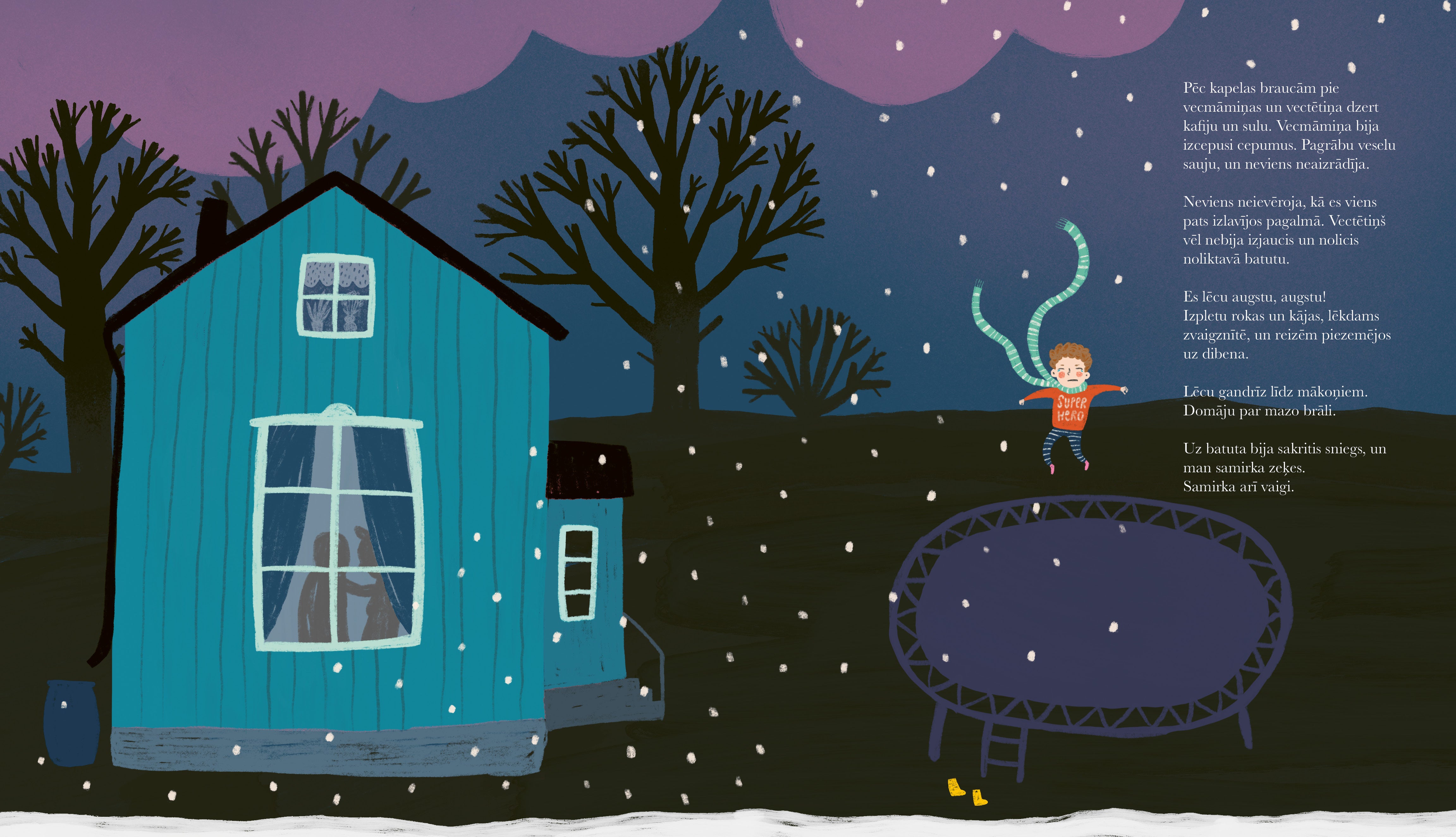 Lielais brālis ļoti gaida, kad mājās no dzemdību nama ieradīsies mazais brālītis. Tomēr viņš tā arī neierodas. Skaistā bilžu grāmata “Tonakt sākās ziema” no bērna viedokļa stāsta par sērām, kas pārņem ģimeni. Galvenā tomēr ir mierinošā doma par to, ka dzīve turpinās.