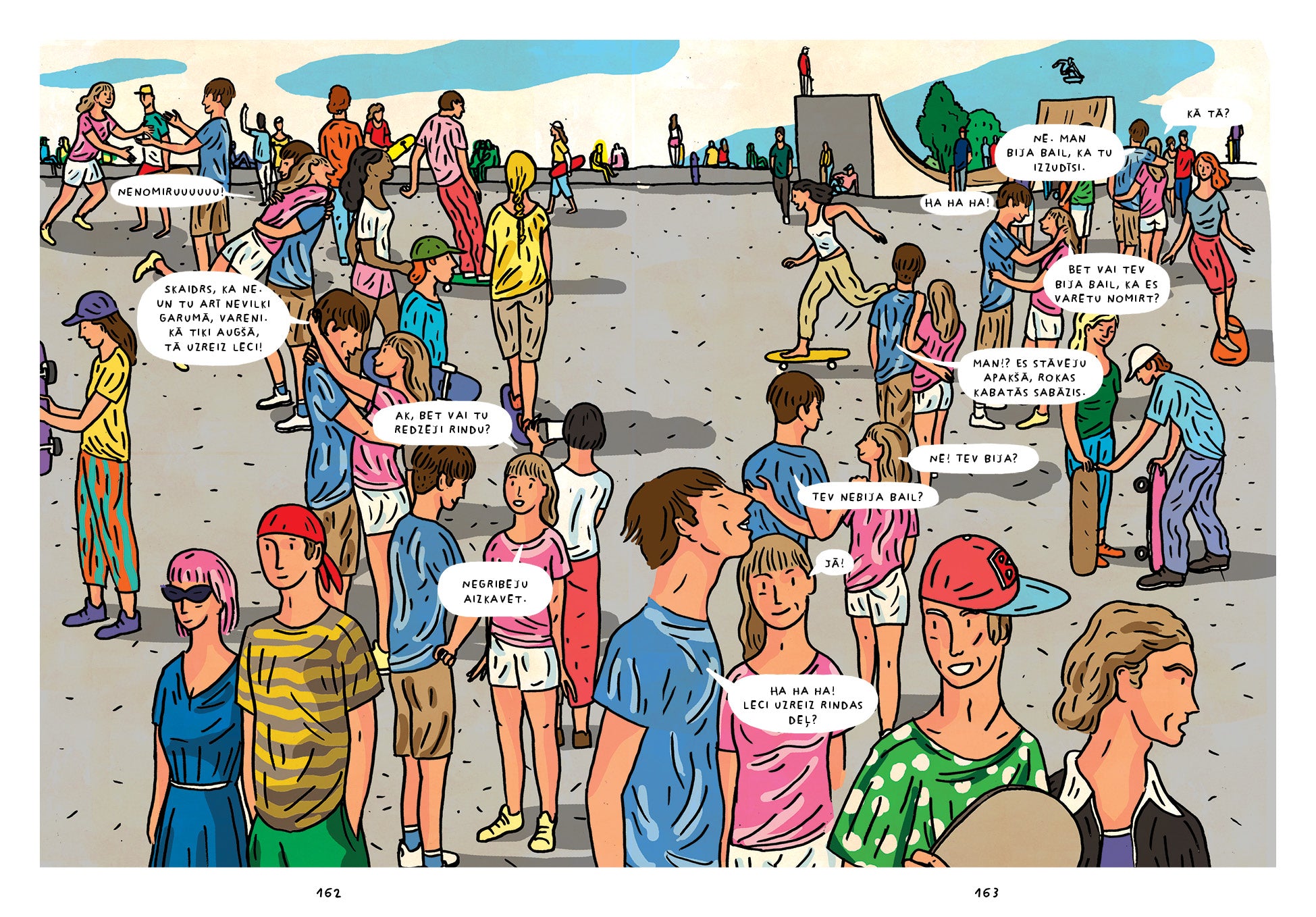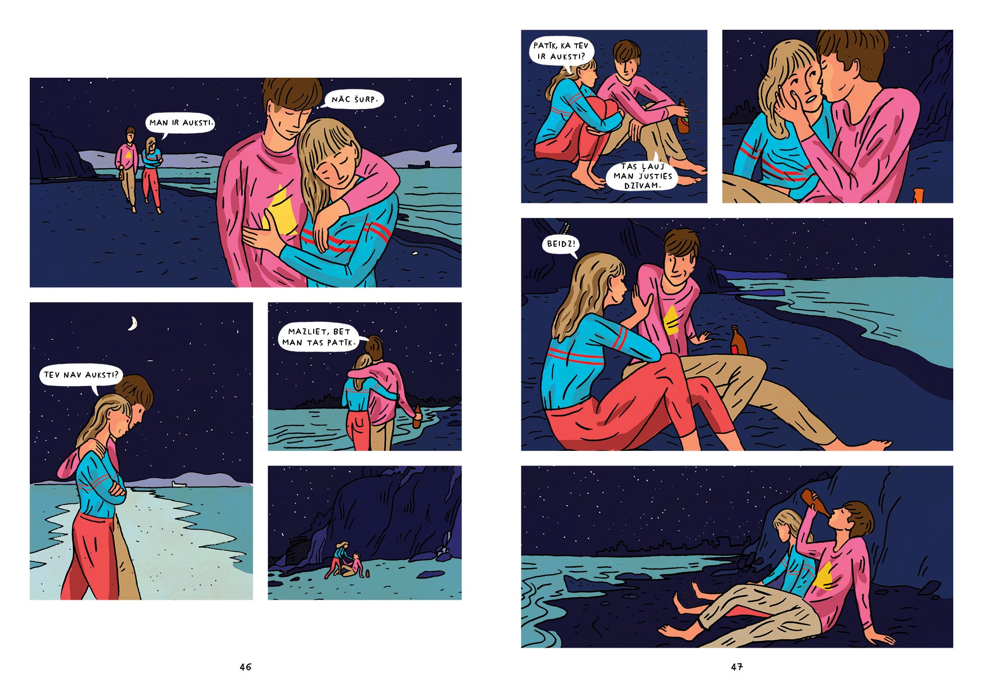Jauniešiem adresētais portugāļu autoru grafiskais romāns atveido savas vietas pasaulē un savas identitātes meklējumus. Autori to dara mākslinieciski mūsdienīgi, sižetiski gudri, iejūtīgi un bez nosodījuma. Grāmatas lielākā vērtība ir tieši šis vērojums bez uzstājīga vērtējuma. Stāsta plūdums ir nesteidzīgs, ar pauzēm un flešbekiem.