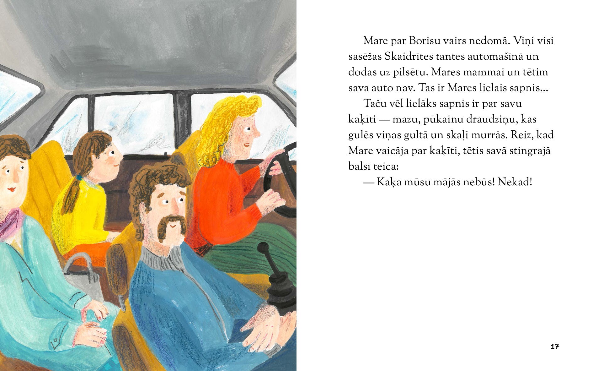 • Stāsts ir par mazo Mari, kas gaida bērnudārza izlaidumu un sapņo par mazu kaķīti, kuru vecāki negrib. Šajā stāstā ir daudz sirds siltuma – Mare no sirds piedod lielajam sunim, kas viņu netīšām saskrambājis, bet Mares tētis, kuram nākas pārvarēt dažas savas bērnības traumas, pavisam negaidot piepilda Mares sapni.