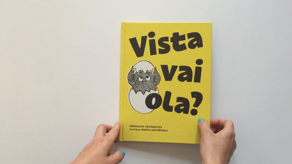 Bilžu grāmata “Vista vai ola?” asprātīgā veidā iepazīstina bērnus ar mūžveco joku par to, kas bija pirmais – vista vai ola? Mazais cālēns, meklējot atbildi uz šo jautājumu, vēršas pie visiem fermas iemītniekiem, pat saimnieka, tomēr katram no sastaptajiem ir cits viedoklis.